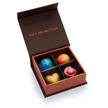 Custom Embossing logo Cardboard 4 6 8 9 Piece Strawberry Truffle Packaging Empty Magnetic Closure Chocolate Box for Valentine