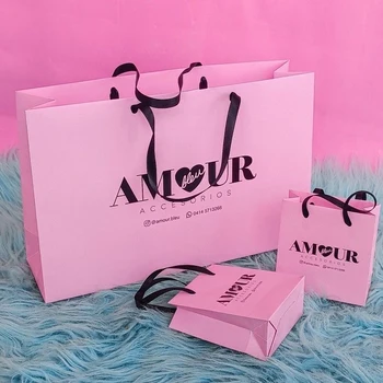 Wholesale Luxury Custom logo pink Shoe Boutique Gift Shopping Paper Cardboard Packaging Bags with Handle for Birthdays Shop